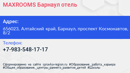 MAXROOMS Барнаул, отель по адресу 656023, Алтайский край, Барнаул, проспект Космонавтов, 8/2 в дальнейшем Организация, размещена в следующих категориях: