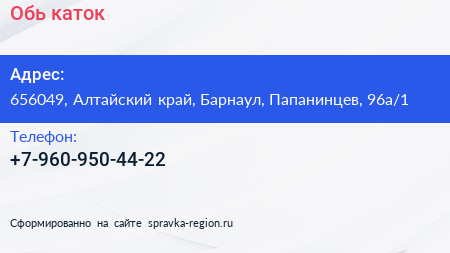 Обь, каток по адресу 656049, Алтайский край, Барнаул, Папанинцев, 96а/1 в дальнейшем Организация, размещена в следующих категориях: