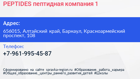 PEPTIDES, пептидная компания №1 по адресу 656015, Алтайский край, Барнаул, Красноармейский проспект, 108 в дальнейшем Организация, размещена в следующих категориях: