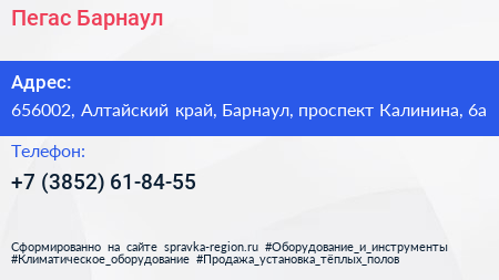 Пегас Барнаул по адресу 656002, Алтайский край, Барнаул, проспект Калинина, 6а в дальнейшем Организация, размещена в следующих категориях: