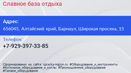 Славное, база отдыха по адресу 656045, Алтайский край, Барнаул, Широкая просека, 15 в дальнейшем Организация, размещена в следующих категориях:
