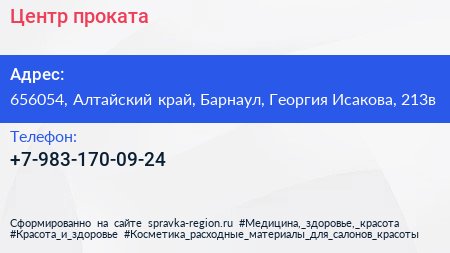 Центр проката по адресу 656054, Алтайский край, Барнаул, Георгия Исакова, 213в в дальнейшем Организация, размещена в следующих категориях: