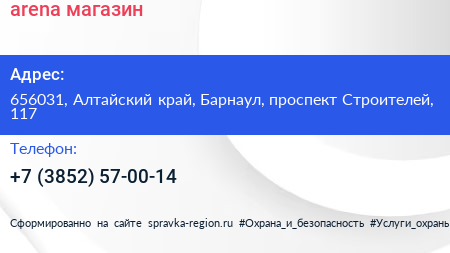 arena, магазин по адресу 656031, Алтайский край, Барнаул, проспект Строителей, 117 в дальнейшем Организация, размещена в следующих категориях:
