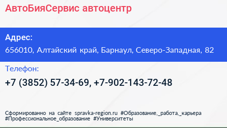 АвтоБияСервис, автоцентр по адресу 656010, Алтайский край, Барнаул, Северо-Западная, 82 в дальнейшем Организация, размещена в следующих категориях: