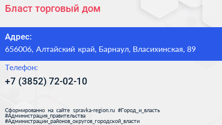 Бласт, торговый дом по адресу 656006, Алтайский край, Барнаул, Власихинская, 89 в дальнейшем Организация, размещена в следующих категориях: