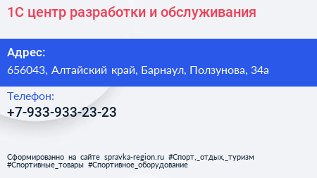 1С- центр разработки и обслуживания по адресу 656043, Алтайский край, Барнаул, Ползунова, 34а в дальнейшем Организация, размещена в следующих категориях: