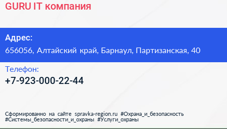 GURU, IT-компания по адресу 656056, Алтайский край, Барнаул, Партизанская, 40 в дальнейшем Организация, размещена в следующих категориях: