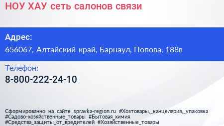 НОУ ХАУ, сеть салонов связи по адресу 656067, Алтайский край, Барнаул, Попова, 188в в дальнейшем Организация, размещена в следующих категориях: