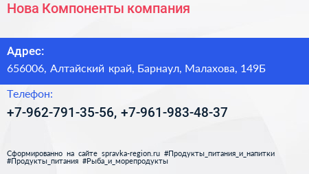 Нова-Компоненты, компания по адресу 656006, Алтайский край, Барнаул, Малахова, 149Б в дальнейшем Организация, размещена в следующих категориях: