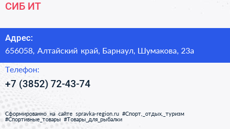СИБ ИТ по адресу 656058, Алтайский край, Барнаул, Шумакова, 23а в дальнейшем Организация, размещена в следующих категориях: