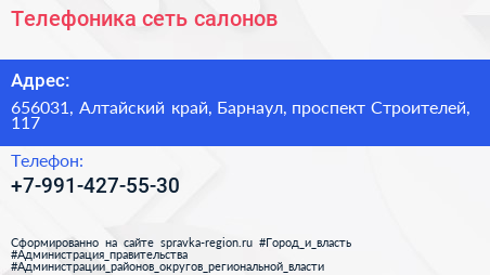 Телефоника, сеть салонов по адресу 656031, Алтайский край, Барнаул, проспект Строителей, 117 в дальнейшем Организация, размещена в следующих категориях: