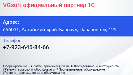 VGsoft, официальный партнер 1С по адресу 656031, Алтайский край, Барнаул, Папанинцев, 125 в дальнейшем Организация, размещена в следующих категориях:
