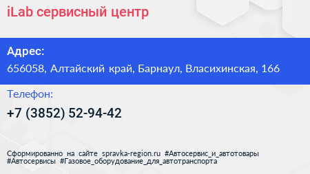 iLab, сервисный центр по адресу 656058, Алтайский край, Барнаул, Власихинская, 166 в дальнейшем Организация, размещена в следующих категориях: