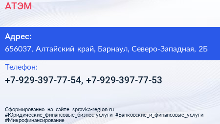 АТЭМ по адресу 656037, Алтайский край, Барнаул, Северо-Западная, 2Б в дальнейшем Организация, размещена в следующих категориях:
