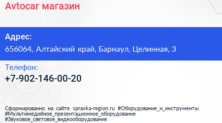 Avtocar, магазин по адресу 656064, Алтайский край, Барнаул, Целинная, 3 в дальнейшем Организация, размещена в следующих категориях: