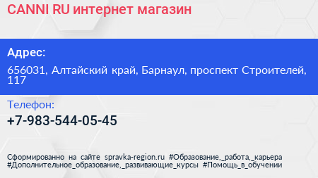CANNI.RU, интернет-магазин по адресу 656031, Алтайский край, Барнаул, проспект Строителей, 117 в дальнейшем Организация, размещена в следующих категориях: