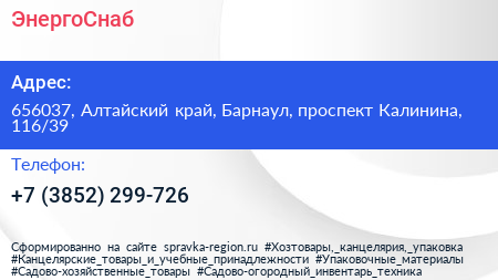ЭнергоСнаб по адресу 656037, Алтайский край, Барнаул, проспект Калинина, 116/39 в дальнейшем Организация, размещена в следующих категориях: