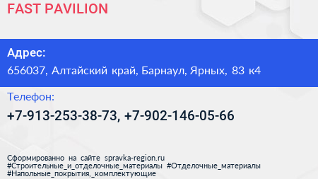 FAST PAVILION по адресу 656037, Алтайский край, Барнаул, Ярных, 83 к4 в дальнейшем Организация, размещена в следующих категориях: