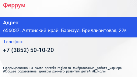 Феррум по адресу 656037, Алтайский край, Барнаул, Бриллиантовая, 22в в дальнейшем Организация, размещена в следующих категориях: