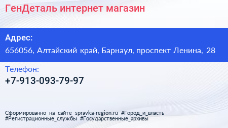 ГенДеталь, интернет-магазин по адресу 656056, Алтайский край, Барнаул, проспект Ленина, 28 в дальнейшем Организация, размещена в следующих категориях: