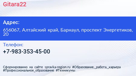Gitara22 по адресу 656067, Алтайский край, Барнаул, проспект Энергетиков, 20 в дальнейшем Организация, размещена в следующих категориях: