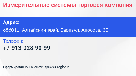 Измерительные системы, торговая компания по адресу 656011, Алтайский край, Барнаул, Аносова, 3Б в дальнейшем Организация, размещена в следующих категориях: