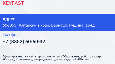 KEYFAST по адресу 656063, Алтайский край, Барнаул, Гущина, 154д в дальнейшем Организация, размещена в следующих категориях: