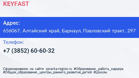 KEYFAST по адресу 656067, Алтайский край, Барнаул, Павловский тракт, 297 в дальнейшем Организация, размещена в следующих категориях: