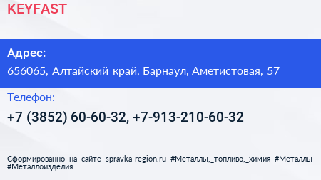 KEYFAST по адресу 656065, Алтайский край, Барнаул, Аметистовая, 57 в дальнейшем Организация, размещена в следующих категориях: