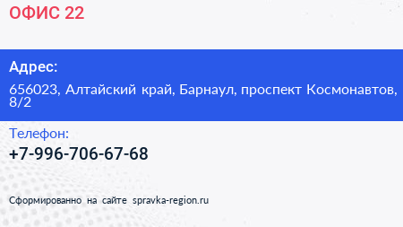 ОФИС 22 по адресу 656023, Алтайский край, Барнаул, проспект Космонавтов, 8/2 в дальнейшем Организация, размещена в следующих категориях:
