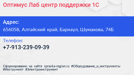 Оптимус Лаб, центр поддержки 1С по адресу 656058, Алтайский край, Барнаул, Шумакова, 74Б в дальнейшем Организация, размещена в следующих категориях: