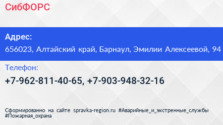 СибФОРС по адресу 656023, Алтайский край, Барнаул, Эмилии Алексеевой, 94 в дальнейшем Организация, размещена в следующих категориях: