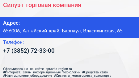 Силуэт, торговая компания по адресу 656006, Алтайский край, Барнаул, Власихинская, 65 в дальнейшем Организация, размещена в следующих категориях: