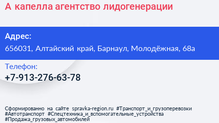 А капелла, агентство лидогенерации по адресу 656031, Алтайский край, Барнаул, Молодёжная, 68а в дальнейшем Организация, размещена в следующих категориях: