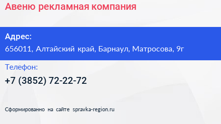 Авеню, рекламная компания по адресу 656011, Алтайский край, Барнаул, Матросова, 9г в дальнейшем Организация, размещена в следующих категориях:
