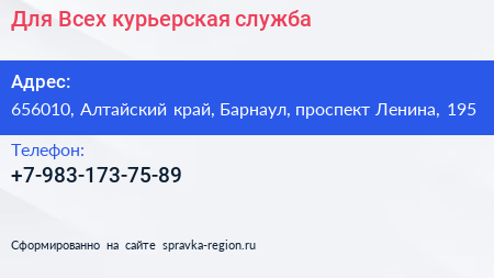 Для Всех, курьерская служба по адресу 656010, Алтайский край, Барнаул, проспект Ленина, 195 в дальнейшем Организация, размещена в следующих категориях: