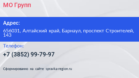 МО-Групп по адресу 656031, Алтайский край, Барнаул, проспект Строителей, 143 в дальнейшем Организация, размещена в следующих категориях: