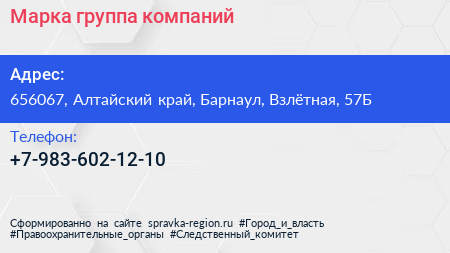 Марка, группа компаний по адресу 656067, Алтайский край, Барнаул, Взлётная, 57Б в дальнейшем Организация, размещена в следующих категориях: