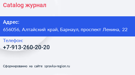 Сatalog, журнал по адресу 656056, Алтайский край, Барнаул, проспект Ленина, 22 в дальнейшем Организация, размещена в следующих категориях: