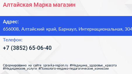 Алтайская Марка, магазин по адресу 656008, Алтайский край, Барнаул, Интернациональная, 304 в дальнейшем Организация, размещена в следующих категориях: