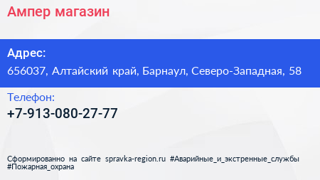 Ампер, магазин по адресу 656037, Алтайский край, Барнаул, Северо-Западная, 58 в дальнейшем Организация, размещена в следующих категориях: