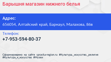 Барышня, магазин нижнего белья по адресу 656054, Алтайский край, Барнаул, Малахова, 86в в дальнейшем Организация, размещена в следующих категориях: