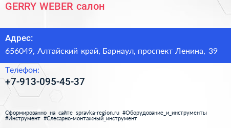 GERRY WEBER, салон по адресу 656049, Алтайский край, Барнаул, проспект Ленина, 39 в дальнейшем Организация, размещена в следующих категориях: