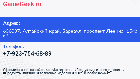 GameGeek.ru по адресу 656037, Алтайский край, Барнаул, проспект Ленина, 154а к7 в дальнейшем Организация, размещена в следующих категориях: