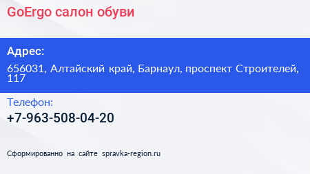 GoErgo, салон обуви по адресу 656031, Алтайский край, Барнаул, проспект Строителей, 117 в дальнейшем Организация, размещена в следующих категориях: