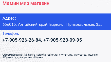 Мамин мир, магазин по адресу 656015, Алтайский край, Барнаул, Привокзальная, 35а в дальнейшем Организация, размещена в следующих категориях: