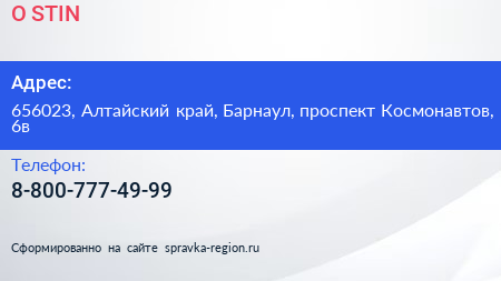 O`STIN по адресу 656023, Алтайский край, Барнаул, проспект Космонавтов, 6в в дальнейшем Организация, размещена в следующих категориях: