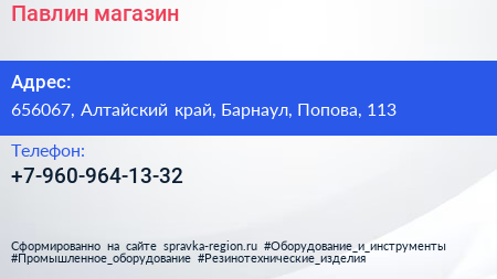 Павлин, магазин по адресу 656067, Алтайский край, Барнаул, Попова, 113 в дальнейшем Организация, размещена в следующих категориях: