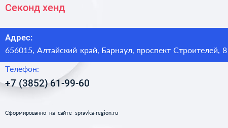 Секонд-хенд по адресу 656015, Алтайский край, Барнаул, проспект Строителей, 8 в дальнейшем Организация, размещена в следующих категориях:
