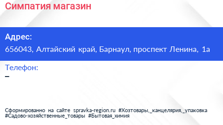Симпатия, магазин по адресу 656043, Алтайский край, Барнаул, проспект Ленина, 1а в дальнейшем Организация, размещена в следующих категориях: